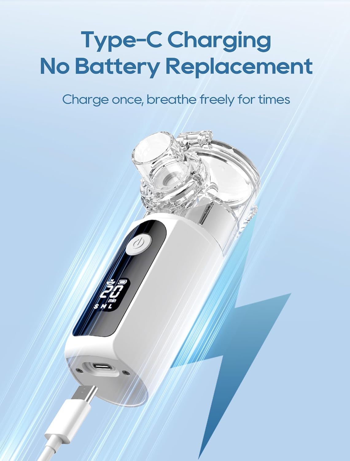 Portable Nebulizer for Adults and Kids with Smart LED Display, 3 Modes & Auto-Cleaning, Handheld Nebulizer for Home and Travel Use